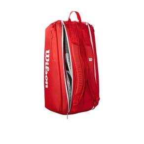 Raqueteira Super Tour 9 PKDesfrute da qualidade impecável e da utilidade de nível profissional da mais recente coleção de bolsas Super Tour da Wilson, em vermelho majestoso, a cor mais icônica da marca.Projetada para carregar até 9 raquetes, roupas e acessórios, esta bolsa conta com dois compartimentos principais, sendo um com forro Thermoguard para proteger o conteúdo de temperaturas extremas. Dois bolsos grandes e um pequeno bolsos externos armazenam itens menores como carteira, celular e outros objetos de valor. O sistema de transporte versátil inclui alças ajustáveis e acolchoadas para usar como mochila, além de uma alça resistente para transporte manual, garantindo praticidade e conforto.- Gênero: Unissex;- Cor: Vermelho;- Tamanho: 29.9 x 11 x 19.7" / 76 x 28 x 50 cm;- Capacidade: 9 raquetes ;- Composição: 100% Poliéster.