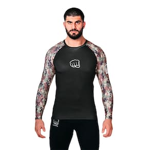 A Rash Guard Camo Selva da Koral é uma opção de alta qualidade para treinos e lutas. Feita com tecido de tecnologia avançada, ela oferece leveza, toque macio e total aderência ao corpo, proporcionando equilíbrio de compressão que evita câimbras e distensões musculares. Além disso, controla o suor excessivo e possui secagem rápida.