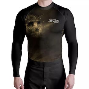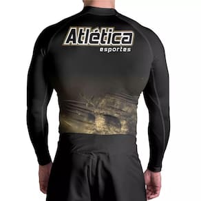Rash Guard Masculina Atlética Esta Rash Guard é produzida com Supplex, que oferece aos nossos clientes a sensação do algodão com os benefícios da tecnologia de fibra avançada. Todo tecido utilizado nas Rash Guard pela Atlética Esportes é de alta tecnologia, próprio para melhorar o desempenho na prática esportiva. Composição:  Rash Guard é confeccionada em Suplex de Poliester: 91,7% Poliester / 8,3% Elastano. Medidas aproximadas que essa Rash Guard veste: P - Largura: 45cm - Altura: 67 cm M - Largura: 46,5cm - Altura: 69 cm G - Largura: 48cm - Altura: 71 cm GG - Largura: 50cm - Altura: 73 cm  Seus principais atributos na prática de atividades físicas são: - Adere totalmente ao corpo com equilibrada compressão, atributos necessários na prevenção de câimbras e distensões musculares; - Proporciona conforto, liberdade de movimentos e resistência; - Não cria odores de transpiração; - Mantém a temperatura corporal; - Não perde a cor nas lavagens; - Possui proteção contra raios UV; Nossas Rash Guard proporcionam maior velocidade de secagem, maior conforto térmico, ou seja, rápida transferência do calor e umidade do corpo para o ambiente através do tecido. Dicas de Cuidado:  - A roupa suja não deve ser acumulada por muito tempo, devendo ser mantida seca e longe da luz solar e em local fresco e arejado (nunca deixar embalada em sacos plasticos). - Separar as cores claras e escuras. - Usar sabões neutros, utilizando sempre a quantidade indicada pelo fabricante (o sabão deve ter na embalagem a garantia de que é específico para artigos delicados). - Não deixe molhado, não torça e não guarde molhado.