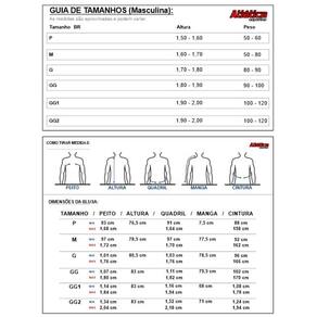 Rash Guard Masculina Atlética Esta Rash Guard é produzida com Supplex, que oferece aos nossos clientes a sensação do algodão com os benefícios da tecnologia de fibra avançada. Todo tecido utilizado nas Rash Guard pela Atlética Esportes é de alta tecnologia, próprio para melhorar o desempenho na prática esportiva. OBS: Pode haver variação na cor do produto final de acordo com o brilho do monitor ou tela do celular. Composição: Rash Guard é confeccionada em Suplex de Poliester: 91,7% Poliester / 8,3% Elastano. Medidas aproximadas que essa Rash Guard veste: P - Circunferência do Tórax: de 93cm a 1,68cm / Comprimento: 76,5cm M - Circunferência do Tórax: de 97cm a 1,72cm / Comprimento: 78,5cm G - Circunferência do Tórax: de 1.01cm a 1,76cm / Comprimento: 80,5cm GG - Circunferência do Tórax: de 1,07cm a 1,80cm / Comprimento: 83cm GG1 - Circunferência do Tórax: de 1,14cm a 1,84cm / Comprimento: 83cm GG2 - Circunferência do Tórax: de 1,34cm a 2,04cm / Comprimento: 83cm Suas principais vantagens na prática de atividades físicas são: - Higiene: Uma das principais funções da rash guard é segurar o suor para evitar que o suor pingue no companheiro de treino. Uma outra função é inibir o atrito de pelos do corpo para o evitar atritos durante o combate como arranhões e até mesmo algumas bactérias. No caso das mulheres, ela ainda mantém o seio mais seguro, principalmente se utilizada por cima do top, e por ela não ser cavada, não deixa o colo exposto. - Mantém a temperatura corporal: Após o seu aquecimento a rash guard, mantém o seu corpo aquecido, proporciona mais energia nos seus treinos e evita lesões. Um exemplo, Antes do treino precisamos aquecer para ter nosso pico de performance, se ficarmos um tempo de rola descansando a rash não deixa nosso corpo esfriar, com o corpo frio se fazermos algum movimento brusco podemos nos lesionar ou até mesmo morrer no gás. - Prolonga a vida útil do kimono: Como a rash guard segura o suor, ela dá mais durabilidade ao seu kimono, pois à composição do suor possui ácido e salino, que são corrosivos, o que pode acabar com o tecido do kimono, além de deixar bactérias no mesmo. Dicas de Cuidado: - A roupa suja não deve ser acumulada por muito tempo, devendo ser mantida seca e longe da luz solar e em local fresco e arejado (nunca deixar embalada em sacos plásticos). - Separar as cores claras e escuras. - Usar produtos neutros, utilizando sempre a quantidade indicada pelo fabricante (deve conter na embalagem a garantia de que é específico para artigos delicados). - Não deixe molhado, não torça e não guarde molhado.