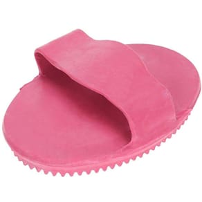 Raspadeira de borracha flexível com alça de mão, muito útil para auxiliar na escovação de seu animal, sendo ideal para retirada de excesso de pêlos em cavalos.