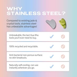 Sacheu Raspador muscular de aço inoxidável Gua Sha Facial Tools. Gua Sha facial para drenagem linfática aprimorada, redução do inchaço e alívio da tensão facial. Ferramenta de escultura facial de - 100% aço inoxidável GUA SHA – O aço inoxidável Gua Sha da Sacheu ajuda a drenar os fluidos linfáticos do rosto, dando a você um contorno natural, enquanto o design de aço inoxidável oferece um efeito de resfriamento - Ajuda a aliviar a tensão – o massageador de drenagem linfática SACHEU ajuda a aliviar a tensão das sobrancelhas franzidas e da mandíbula cerrada, reduz os músculos faciais hiperativos para ajudar a dinamizar as rugas - Autoresfriamento: mais frio, mais limpo e mais sustentável do que ferramentas faciais alternativas gua sha. A gua de jade e quartzo rosa quebra facilmente se cair, mas esta ferramenta facial gua sha durará para sempre - Levanta e firma – Segura e eficaz para todos os tipos de pele, a ferramenta de massagem de metal SACHEU gua sha ajuda a levantar e firmar a pele ao longo do tempo, pois um tratamento facial gua sha ajuda a aumentar a entrega de oxigênio e nutrientes - Feito com materiais de qualidade – Fácil de limpar e fácil de usar. Esta gua sha de alta qualidade é inovadora pela SACHEU e é 100% reciclável. Vem com uma bolsa de viagem para levar sua gua sha em qualquer lugar