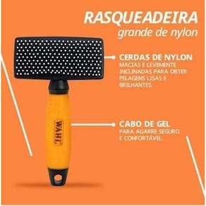 A Rasqueadeira de Nylon tem cerdas para remover pelos soltos, resíduos e emaranhados, proporcionando uma pelagem macia. Os pinos esféricos são perfeitos Para animais de estimação com pele sensível, pois deslizam pela pelagem e proporcionam uma Massagem suave e reconfortante. Adequada para cães e gatos.