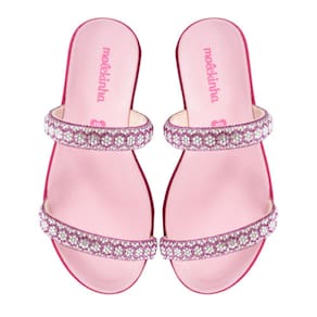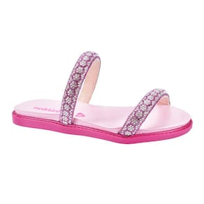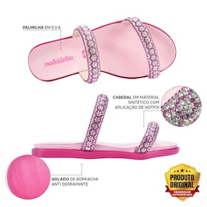 O tamanco Rasteira Molekinha 2312255 tem o cabedal com tiras revestidas de pedrarias e strass hotfix deixando o look das meninas cheio de brilho e charme. Palmilha de EVA para o máximo de conforto. O solado é de material TR antiderrapante, garantindo mais segurança e estabilidade ao caminhar.