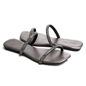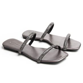 Rasteira Jac Grafite com Strass 2568 - Cinza - 34