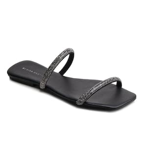 Rasteira Jac Preta com Strass 2569 - Preto - 39