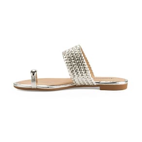 O Slide Mississipi destaca seu design minimalista e atemporal, que torna esse modelo versátil. O destaque fica por conta da tira larga e tramada que envolve o pé, adicionando um toque de sofisticação ao modelo, e da tira que envolve o dedo com a peça metalizada, que confere um ar elegante e único.