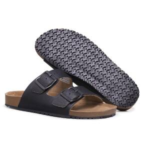 Rasteira Papete Couro Palmilha Anatomica Unissex Fivela Com Regulagem Tendencia - 36 - Preto