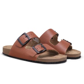 Rasteira Papete Couro Palmilha Anatomica Unissex Fivela Com Regulagem Tendencia - 37 - Marrom