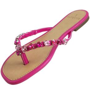 Apresentamos a Rasteirinha Feminina Nice, uma verdadeira joia para seus pés. Um calçado flat com um moderno bico quadrado, este modelo é ideal para dar o toque de brilho que os seus visuais merecem