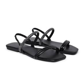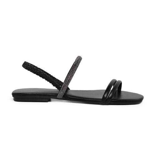 Rasteirinha Feminina Casual Elástico Strass Conforto Moderna - 40 - Preto
