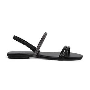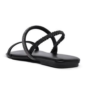 Rasteirinha Feminina Casual Elástico Strass Conforto Moderna - 43 - Preto