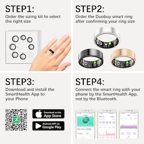 Anel inteligente rastreador de atividades para homens e mulheres - monitor de frequência cardíaca, oxigênio no sangue, pressão arterial, IP68 impermeável, rastreador de sono, rastreador de passos, sem taxa de assinatura de aplicativo, vida útil da bateria Utra com capa de carga grande de 400 mAh - 💎?Tamanho antes de comprar?Antes de comprar o Duobuy Smart Ring, recomendamos comprar o kit de tamanho Duobuy para determinar o tamanho mais confortável e adequado para o seu dedo, evitando o inconveniente de devoluções e trocas. O anel inteligente Duobuy é projetado de acordo com o padrão de anel dos EUA, se você souber o tamanho do anel dos EUA, também pode comprar o anel Duobuy com o mesmo tamanho dos EUA. - 💎?Rastreador de sono inteligente?: seu rastreador de sono favorito agora está enrolado em seu dedo. Estes anéis de saúde para homens e mulheres também podem monitorar automaticamente seu sono. Monitore sua hora de adormecer, acordar, qualidade do sono (sono profundo e sono leve) por meio de gráficos. Você pode ver dados de sono diários, semanais e mensais no aplicativo, ajudando você a ajustar melhor seus hábitos para melhorar a qualidade do seu sono. O anel fitness é tão confortável que você nem perceberá que está lá enquanto monitora seu sono. - 💎?Acompanhe sua saúde a partir do seu dedo?: Este anel de saúde vital fino para mulheres e homens oferece oxigênio no sangue 24 horas, frequência cardíaca 24 horas e monitoramento de pressão arterial 24 horas. Você pode visualizar convenientemente esses indicadores de saúde em tempo real do seu pulso a qualquer momento, em qualquer lugar, e você pode ver dados de saúde diários, semanais e mensais no aplicativo. O anel de saúde vital Duobuy para mulheres fornece informações de monitoramento mais precisas para ajudar você a explorar um estilo de vida mais saudável. - 💎?Rastreador de atividades e vários modos esportivos?: os anéis de fitness para homens e mulheres rastreiam automaticamente seus passos, calorias queimadas e distância ao longo do dia. Este anel inteligente tem vários modos esportivos, como corrida, ciclismo, pular corda, caminhada, ioga, dança, golfe e muito mais. Ative esses modos esportivos, você terá rota de treino, tempo esportivo, passos, frequência cardíaca, velocidades, calorias queimadas e distância do aplicativo, para fornecer orientação de exercícios mais eficaz. - 💎?SEM taxas de assinatura?: Depois de comprar o anel Duobuy vital, você pode desfrutar de acesso vitalício ao aplicativo de saúde inteligente. Desfrute de rastreamento de saúde em tempo real ao redor do anel inteligente sem taxas extras. Sem taxas de assinatura para baixar o aplicativo e usá-lo por toda a vida. - 💎?Bateria de longa duração?: o anel inteligente Duobuy tem uma vida útil da bateria de até 3-5 dias com uma carga de 2 horas. Oferecemos um estojo de carregamento portátil com bateria de 400 mAh, pode carregar totalmente o anel inteligente por cerca de 15 vezes, o que estende muito o tempo de uso para 60 dias. Você também pode carregar o estojo de carregamento e usá-lo para carregar o anel inteligente 15 vezes novamente. Ideal para viajantes de negócios frequentes e entusiastas de atividades ao ar livre, garantindo monitoramento contínuo da saúde, não importa onde você esteja. - 💎?Fácil de carregar e ampla compatibilidade?: Basta carregar os anéis inteligentes para mulheres e homens com um cabo USB magnético ou o estojo de carregamento. Os anéis inteligentes para mulheres e homens são compatíveis com smartphones Android 4.4/iOS 8.4 ou superior. O que você recebe inclui: 1 anel inteligente Duobuy 1, capa de carregamento de 400 mAh, 1 cabo de carregamento USB magnético, cabo de carregamento tipo C (para carregar o estojo de carregamento) x 1 manual de instruções (sem garantia de versão em português). Este rastreador de anel é um ótimo presente para homens e mulheres.