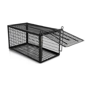 Ratoeira tipo gaiola de metal. Armadilha projetada para a captura de roedores tais como ratazanas, ratos, camundongos e etc... Essas pragas podem penetrar em espaços pequenos e roer fios elétricos, cabos telefônicos e, com isso, podem vir a causar curtos circuitos e provocar incêndios. Além dos prejuízos econômicos, podem prejudicar a saúde humana e de outros animais, são transmissores de diversas doenças. Esta ratoeira é de facil montagem/instalação e prática para o uso. Basta utilizar uma isca atrativa e esperar para que o roedor seja capturado.