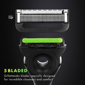 Máquina de barbear masculina Gillette Labs com barra esfoliante, kit de barbear para homens, inclui 1 alça, 2 recargas de lâmina de barbear, 1 suporte magnético premium — Máquina de barbear