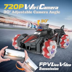 Este carro pode girar em 360 graus para uma experiência de jogo diferente. Ele é projetado com câmera 720P de alta definição. Tem uma função de pulverização de um botão.