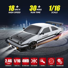 Carros de controle remoto de alta velocidade 4WD escala 1:16 - Manipulação do carro de tração 4WD: para frente, para trás, vire à esquerda e à direita e acelere proporcionalmente; a velocidade máxima do carro de controle remoto pode chegar a 18 km/h. A carcaça do carro o torna menos suscetível a danos por impacto durante a condução. Você não precisa se preocupar com o desgaste do pneu, os pneus são espessos de alta qualidade e as rodas são removíveis e substituíveis - Com luz LED e pulverizador: o carro de controle remoto Sakeye vem com um par de luzes LED e luzes LED em spray. Quando o carro RC estiver ligado, as luzes começarão a piscar lindamente. Ligue o botão de pulverização da alça do controle remoto, a parte traseira do carro de controle remoto mostrará uma névoa de água fresca e linda, tornando o carro de controle remoto mais legal e emocionante durante a condução - Tecnologia 2,4 G e multiplicação de diversão: alta frequência de 2,4 GHz, pode controlar a distância de 368 cm, suporta várias pessoas para jogar o carro de controle remoto ao mesmo tempo, sem interferência; fornecemos duas baterias recarregáveis, cada bateria pode dar a você mais de 20 minutos de diversão de corrida e duas baterias podem lhe dar quase 40 minutos a mais de diversão de corrida. Após uma carga completa, a alegria é dobrada e a experiência é melhor - Configuração do pneu: O carro Drift vem com 4 pneus de corrida de velocidade e 4 pneus drift. Quando você quiser exibir este carro rc drift de alta velocidade com acrobacias, você pode flutuar em pranchas lisas, azulejos, pistas com melhor manuseio e agilidade perfeita, e quando você quiser torná-lo um carro esportivo, os pneus de corrida serão sua boa escolha - Arte de brinquedo de alta qualidade: quando você está preocupado ao escolher brinquedos valiosos, este é um brinquedo muito econômico, com uma aparência legal, é uma obra de arte quando você não está brincando, e há oito atributos para você escolher. É um bom brinquedo para meninos, meninas, adultos e idosos