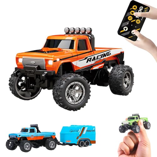 -?Design compacto e portátil?Construído com uma escala de modelo 1:64, este caminhão Monster RC é pequeno, conveniente e perfeito para jogos espontâneos. Leve e fácil de transportar, está pronto para a ação em qualquer lugar, da sala de estar ao ar livre, tornando-o o caminhão RC portátil ideal para crianças e amadores.