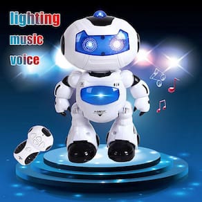 RC Music Light Remote Control Robot Toy Intelligent Walking Space Robot Toy O ROBÔ DE BRINQUEDO PERFEITO PARA CRIANÇAS Este RC Robot Toys oferece uma variedade de recursos e ações que irão encantar crianças de todas as idades e proporcionar horas de diversão. Modo de dança remota O robô pode girar para frente, para trás, para a esquerda e virar à direita sob o controle do controle remoto a uma distância de 15m. Plástico ABS de alta qualidade e design de sala para crianças. É muito inteligente e rápido, função completa - avançar, retroceder, virar à esquerda, virar à direita, luz, música, demonstração do carro. Robô elétrico ambulante, incluindo música leve, pode balançar a cabeça e pode balançar o braço. Grande diversão Item: Fun Dancing Robert Electronic Toys With Music Lightening Toys Gift For Kids Children Tipo de item: Animais de estimação eletrônicos Classificação: Aviso eletrônico: Mantenha longe do fogo Material: Plástico Características: Operado por bateria, piscando, soando Depois de ligar o robô de dança atraente e controlado remotamente começa a dançar. Ele dança e gira com luzes azuladas nos olhos e no peito. Seus braços e pernas se movem de forma tão interessante que você e seus filhos mal conseguem parar de brincar com ele. Material: É feito de plástico de alta qualidade com acabamento muito fino. Idade da criança: É recomendado para crianças a partir dos 3 anos. Sexo da criança: não específico do gênero Tamanho: 28 x 23 x 11 cm/11 x 9 x 4,3 polegadas Baterias: 4 x 1.5V AA para o robô e 2 x 1.5V AA para o controle remoto (A bateria precisa ser comprada por você. Incluído no pacote: 1 x brinquedo robô 1 x controle remoto