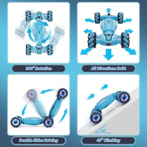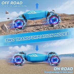 - Omni-Drifting & Cool Stunt: o carro acrobático RC de alta tecnologia com sensor de gestos 4WD pode dirigir e derrapar em todas as direções, girando 360°, escalando 45°, virar nos modos off-road e on-road. Uma experiência de direção emocionante para crianças e adultos