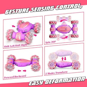 - Tecnologia revolucionária de detecção de gestos: atualize sua experiência de carro de controle remoto com nosso carro de acrobacias RC com sensor de gestos! Essa tecnologia de ponta permite que você controle os movimentos do carro simplesmente acenando com a mão. Veja como ele responde aos seus gestos, desliza em todas as direções, executa incríveis rotações de 360° e até mesmo vira com facilidade. Prepare-se para uma aventura de corrida cheia de adrenalina como nenhuma outra!