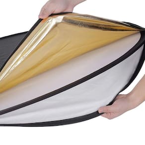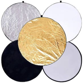 Rebatedor Refletor Luz Fotográfico 104Cm 5X1 Dobrável Bolsa O Rebatedor Refletor Fotográfico 5 em 1 Lorben é o modelo ideal para quem busca um acessório que auxilie na criação de efeitos e correções de iluminação em suas fotos. Pode ser utilizado em diversos momento e ambientes na fotografia, em fotos de estúdios com o auxílio de iluminadores artificiais, como também para fotografias externas, com luz natural. Estrutura no formato 5 em 1: um dos lados do tecido é dourado com o verso preto, outro lado é prateado com o verso branco. Acompanha também um aro com tecido translúcido. Com armação maleável, pode ser dobrado e facilmente transportado e guardado. Devido a essa armação, seu modo de utilização é muito simples: basta retirá-lo da bolsa de nylon e deixá-lo abrir automaticamente. Em seguida, basta direcionar o mesmo contra a iluminação e provocar a reflexão da luz com a cor desejada. Marca: Lorben Tipo: Rebatedor/Refletor Fotográfico Material: Alumínio e nylon Formato: Circular Dimensão do produto: Diâmetro: Ø 104cm Dimensão da bolsa: Diâmetro: Ø 42cm Peso do produto: 690g Tamanho da embalagem: 43x43x5cm Peso da embalagem: 700g Itens Inclusos: 1x Rebatedor/Refletor Circular 5 em 1 1x Bolsa em nylon para transporte. Fotos meramente ilustrativas. Tonalidades podem variar. Medidas aproximadas do produto - Comprimento: 43 cm - Altura: 5 cm - Largura: 43 cm - Peso: 700 g Ficha técnica - Inclui bolsa: Sim - Diâmetro: 104cm - Cores das superfícies: Preto, branco, dourado, prateado e translúcido - Forma: Circular