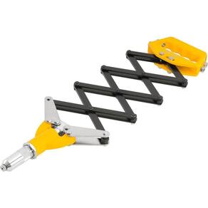 Material do corpo do rebitador Aço estampado e alumínio Quantidade de bicos do rebitador: 05 bicos Comprimento total do rebitador: 830,0 mm Diâmetro máximo de rebite: 6,4 mm Tipo do rebite indicado: Alumínio, aço e aço inox Produto: Rebitador