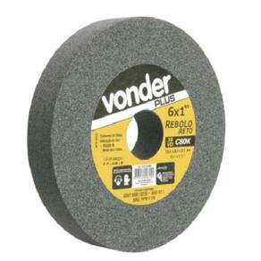 :: especificações técnicas: - diâmetro do rebolo: 6 - 152mm - espessura do rebolo: 1 - 25,4mm - diâmetro do furo do rebolo: 1.1/4 - 31mm - cor do rebolo: verde - grão: g 100 - tipo de grão abrasivo: carbureto de silício dureza do rebolo