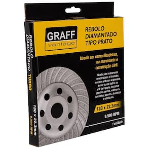 Rebolo diamantado tipo prato é indicado para uso em esmerilhadeiras, utilizado em marmoraria, construção civil/alvenaria, para nivelar, acabamentos arredondados e bisotados, remover pinturas e argamassas, tornar pisos rústicos ou antiderrapantes, desbastar granitos, pedras, mármores, concretos, paredes, alvenarias e refratários. Fabricado em material de alta resistência, oferecendo maior durabilidade ao produto.