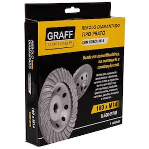 Marca: Graff Vantage Rebolo Diamantado Tipo Prato com rosca M14. Indicado para nivelar, dar acabamentos, remover pinturas e argamassa, desbastar granitos, pedras, mármores, concretos, paredes, alvenarias e refratários. Marca: Graff