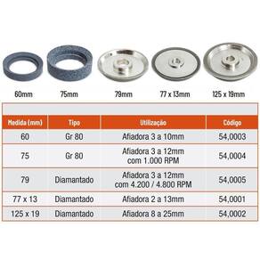 - Utilização: Afiadora com capacidade de 3 a 10mm.