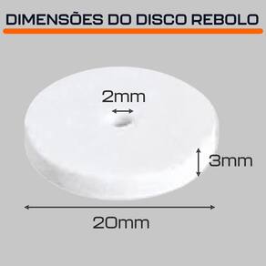 Rebolo Roda Abrasiva 20mm Branca para Micro Retíficas Multimarcas Dremax - Marca: Dremax - Referência: REB003 - Material: Óxido de Alumínio Branco - Diâmetro externo do rebolo: 20mm - Diâmetro do furo do rebolo: 2mm - Espessura do rebolo: 3,2mm - Indicado para desbastes e afiações de peças ou ferramentas - Uso em micro retíficas de qualquer marca com suporte para rebolos - Para uso na maioria dos materiais, incluindo aço inoxidável, peças fundidas, uniões soldadas, rebites e ferrugem - Pode ser usada para diversas aplicações de esmerilhar, como afiar lâminas de ferramentas, remover arestas de peças fundidas de metal, esmerilhar bordas ou pontas afiadas em metal e remover ferrugem - Garantia: 90 dias Marca: Dremax