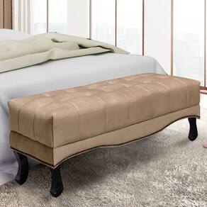 Estofado em suede veludo light 180g: toque macio e eleganteAssento capitonado para visual sofisticadoPés Luiz XV em madeira maciça, resistentes e decorativosTachinhas em metal fumê para acabamento de alto padrãoIdeal para apoio, composição decorativa ou uso aos pés da camaDisponível em 6 cores para combinar com seu estilo