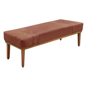 Seu estofado é revestido com veludo deluxe 250g, oferecendo textura macia e visual sofisticado. A estrutura é feita em madeira maciça, garantindo durabilidade, enquanto os botões decorativos em madeira cerejeira adicionam charme artesanal à peça.