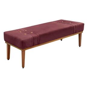 Seu estofado é revestido com veludo deluxe 250g, oferecendo textura macia e visual sofisticado. A estrutura é feita em madeira maciça, garantindo durabilidade, enquanto os botões decorativos em madeira cerejeira adicionam charme artesanal à peça.