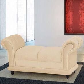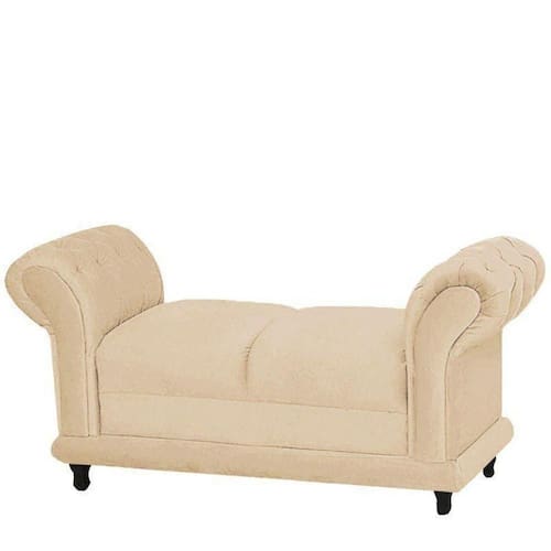 Recamier Athenas Namoradeira Calçadeira Bege 801 - Js Móveis Recamier Athenas Namoradeira Calçadeira Preto 800 - js Móveis. Produzida com estrutura de madeira eucalipto, tapeçada com espuma de poliuretano, revestida em tecido suede na cor bege, com botões no estilo capitonê. Aproveite e deixe o seu ambiente mais elegante e sofisticado com esse Recamier Athenas. Especificações do Produto: - Modelo: Athenas - Fabricado em Madeira de Eucalipto, mdp - Tecido Suede - Produto Montado - Pés Madeira Cor - Botões Capitonê