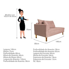 Recamier Azura 140cm Com Almofada Lado Direito Suede - Doce Sonho Móveis Cor Rosê