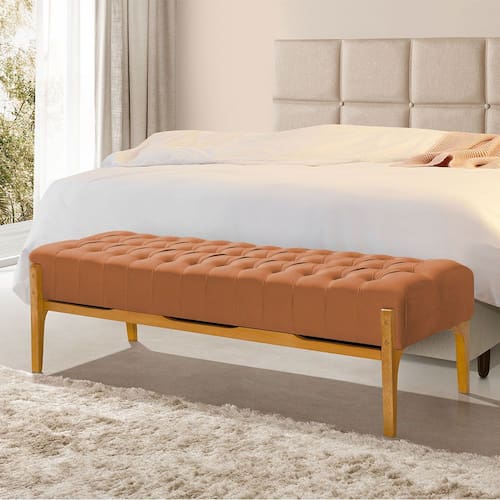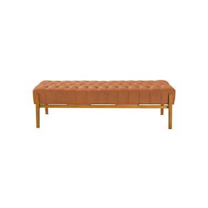 Recamier Base em Madeira Puerto 1,30m Capitonê Veludo Terracota - Laranja