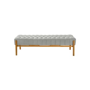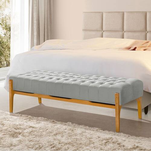Recamier Base em Madeira Puerto 1,50m Capitonê Veludo Cinza Claro