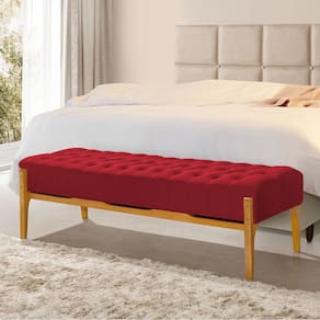 Recamier Base em Madeira Puerto 1,50m Capitonê Veludo Vermelho
