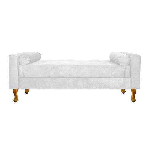 Com uma estrutura e beleza única, o Recamier Félix se adapta em qualquer ambiente, tornando-o ainda mais elegante e harmonioso. Um Recamier luxuoso de alta qualidade, dará um toque especial em seu ambiente. Não perca essa oportunidade de levar mais charme e requinte ao seu cômodo, adquira já o seu! Especificações Técnicas do Recamier Félix: - Altura: 53 cm; - Largura: 100 cm; - Profundidade: 60 cm; - Altura do Assento: 42 cm; - Largura do Assento: 80 cm; - Profundidade do Assento: 60 cm; - Altura dos Pés: 18 cm; - Peso: 35 kg. - Peso Suportado: 220 kg. Medida Interna do Baú: - Altura: 11 cm; - Largura: 80 cm; - Profundidade: 55 cm; Diferenciais do Recamier Félix: - Material da Estrutura: fabricado com Madeira Pinus e Eucalipto Reflorestada, e alguns detalhes em MDF; - Tipo de Assento: estofado e com espuma de densidade D-26; - Tipo de Encosto: estofado e com espuma de densidade D-18; - Detalhes do Tecido: possui detalhes em botonê, onde os botões são revestidos no mesmo tecido do produto e finalizados com excelente acabamento; - Detalhes dos Pés: acompanha kit de pés (4 pés) de madeira, no estilo Luís XV, com alta resistência; - Volumes: nessa compra você receberá um único produto. Recomendações de limpeza: -Limpar com flanela limpa e seca. Não molhar o móvel e não expor em lugar úmido ou próximo de fontes de calor. Não usar produtos abrasivos. Observações Importantes: - As imagens ambientadas são meramente ilustrativas e podem apresentar itens que não compõe o produto; - Objetos decorativos que aparecem na foto não acompanham o produto; - As cores do produto podem variar de acordo com o monitor, a iluminação do ambiente, ou sua percepção visual; - O Recamier Félix chegará montado para você, bastando rosquear os pés; - Confira as dimensões antes da compra e certifique-se de que o produto passará por elevadores, portas e corredores, já que nossa entrega não inclui a subida de lances de escada, ou o lançamento de produtos; - Ao receber seus produtos, verifique no ato do recebimento qualquer dano na embalagem. Caso tenha alguma avaria, favor não assinar o comprovante de recebimento (A transportadora tem obrigação de esperar a conferência); - Produto para uso residencial em ambiente interno, não devendo ficar exposto diretamente ao sol, calor e umidades excessivas.