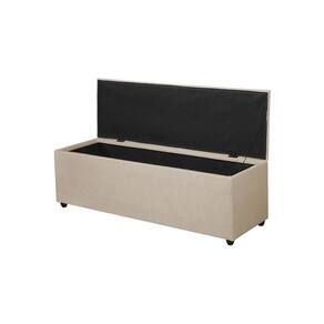 Seu design atemporal e acabamento em linho bege proporcionam elegância e versatilidade, perfeito para uso aos pés da cama, em closets ou halls de entrada.