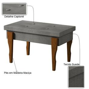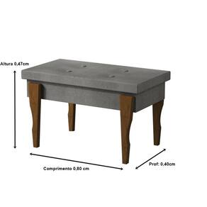 Recamier Calçadeira Banco Puff Captonê Pés Madeira 0,80 Espanha - Cinza