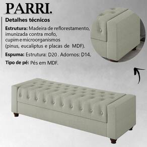 Recamier Calçadeira Bau 140 cm Pes MDF Parri Linho, ideal para quem procura por funcionalidade e modernidade, trazendo um visual versátil a sua decoração. Estrutura em madeira de reflorestamento (pinus, eucaliptos e placas de MDF) que oferece maior durabilidade ao produto. Composto por madeira imunizada contra mofo, cupim e microrganismos, baú com dobradiças metálicas e ótimo espaço interno, que servirá para guardar suas cobertas e travesseiros, revestimento em tecido linho, estrutura em espuma D-20, adornos em espuma D-14, e conta com 4 pés em MDF de 10 cm de altura. Possui design inovador e sofisticado, proporcionando charme e elegância ao seu ambiente. Este móvel chegará na sua casa separado em 01 volume.