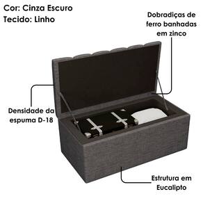 Madeira (Eucalipto), espuma e tecido.O móvel ideal para complementar seu quarto, o Recamier Dalia alia modernidade e organização para o dia a dia! Com estrutura em Madeira de Eucalipto (reflorestada) e estofado em espuma D-18. Possui revestimento em tecido Linho (resistente e levemente texturizado) com detalhes na costura do tampo, amplo espaço de armazenamento interno e sapatas plásticas. Este produto será entregue em 1 volume.