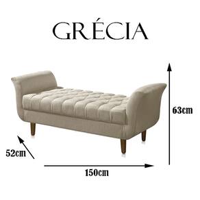 Uma excelente peça decorativa e funcional para seu lar ou ambiente de trabalho. O Recamier Grecia tem traços modernos e leves, deixando qualquer ambiente mais elegante e confortável, perfeito para o seu quarto ou sua sala dando um charme a mais. Possui uma estrutura resistente em madeira de eucalipto oferecendo maior durabilidade ao produto, revestimento em costura resistente com tecido de alta qualidade, excelente acabamento em Capitonê com Botões encapados, possui um design moderno e sofisticado também é ideal para ser posicionado aos pés de cama, além de super elegante também é confortável, deixa seu ambiente moderno e agradável, acompanha pés em madeira.