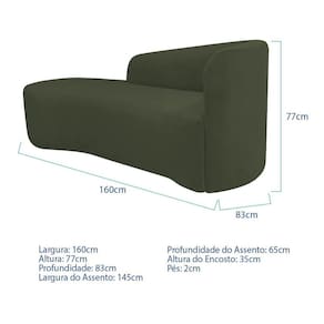 Recamier Curvo Orgânico 160cm 2 Lugares Lado Esquerdo para Sala de Estar Linho Paris Verde - Verde | Marrom