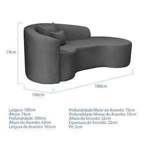 Recamier Curvo Orgânico 180cm 3 Lugares Lado Direito para Sala de Estar Linho Londres Cinza Escuro