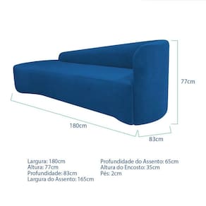 Recamier Curvo Orgânico 180cm 3 Lugares Lado Esquerdo para Sala de Estar Linho Paris Azul royal - Azul | Branco