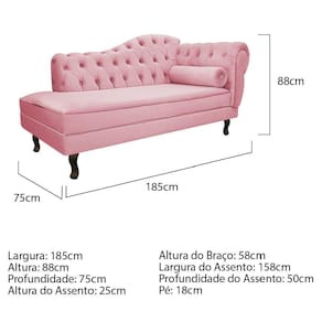 Com uma estrutura e beleza única, o Recamier Diana Lado Esquerdo se adapta em qualquer ambiente, tornando-o ainda mais elegante e harmonioso. Um Recamier luxuoso de alta qualidade, dará um toque especial em seu ambiente. Não perca essa oportunidade de levar mais charme e requinte ao seu cômodo, adquira já o seu! Especificações Técnicas do Recamier Diana: - Altura: 88 cm; - Largura: 185 cm; - Profundidade: 75 cm; - Altura do Assento: 25 cm; - Altura do Braço: 58 cm; - Largura do Assento: 158 cm; - Profundidade do Assento: 50 cm; - Altura dos Pés: 18 cm; - Peso: 35 kg. - Peso Suportado: 220 kg. Diferenciais do Recamier Diana: - Material da Estrutura: fabricado com Madeira Pinus e Eucalipto Reflorestada, e alguns detalhes em MDF; - Tipo de Assento: estofado e com espuma de densidade D-26; - Tipo de Encosto: estofado e com espuma de densidade D-18; - Detalhes do Tecido: possui detalhes em capitonê, onde os botões são revestidos no mesmo tecido do produto e finalizados com excelente acabamento; - Detalhes dos Pés: acompanha kit de pés (4 pés) de madeira, no estilo Luis XV com alta resistência; - Volumes: nessa compra você receberá um único produto. Recomendações de limpeza: -Limpar com flanela limpa e seca. Não molhar o móvel e não expor em lugar úmido ou próximo de fontes de calor. Não usar produtos abrasivos.